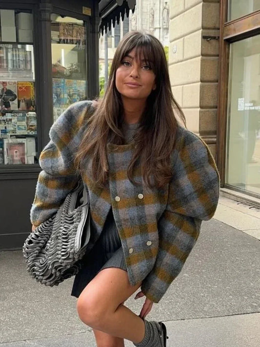 Adriana | Tidlös Vintage Kappa – Rund Hals Och Rutigt Mönster