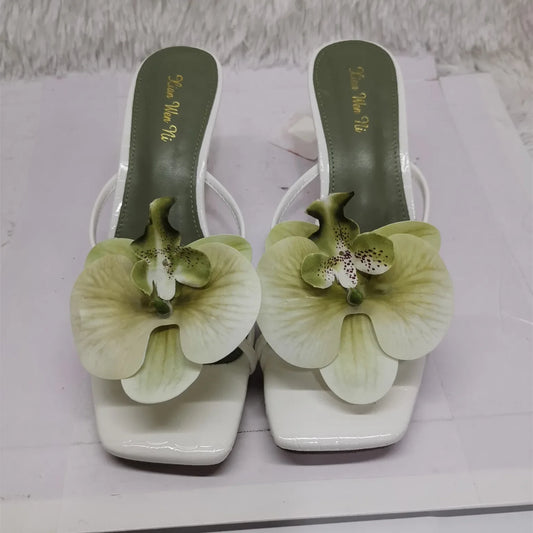 Julia | Eleganta Flipflops – Romantisk Orkidédekor Och Höga Klackar