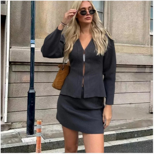 Keira | Chic Stickad Kjol Och Rund Halsvästuppsättning – För Eleganta Tillfällen