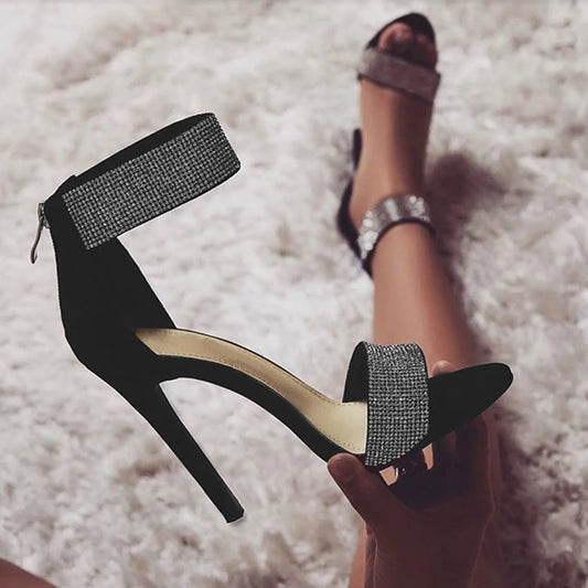 Monica | Eleganta Högklackade Sandaler – Kristalldesign för Stil och Komfort