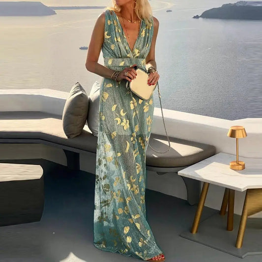 Nan | Elegant Grön Maxiklänning Dam – Ärmlös Korsettdesign