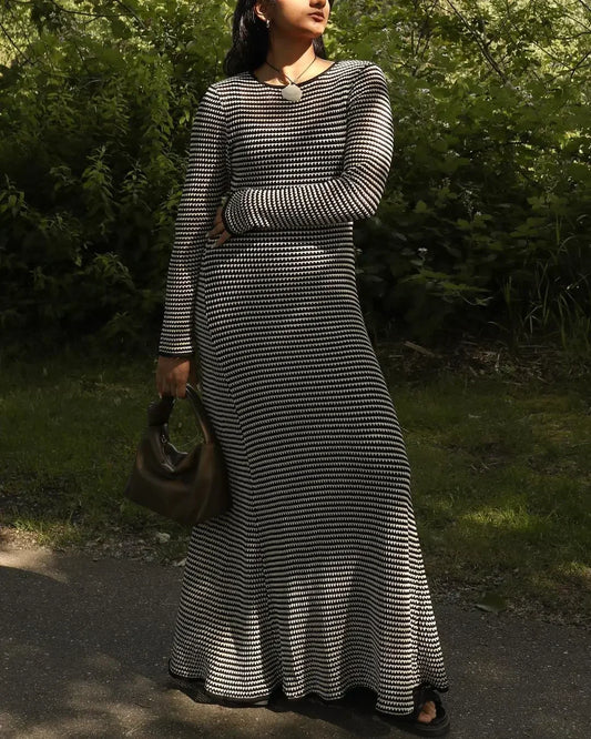 Nahla | Tidlös Maxiklänning Dam – Svartvita Randiga Detaljer
