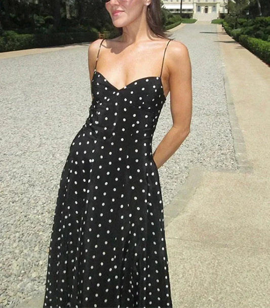 Nicka | Retro Stropplös Klänning Dam – Pricktryck