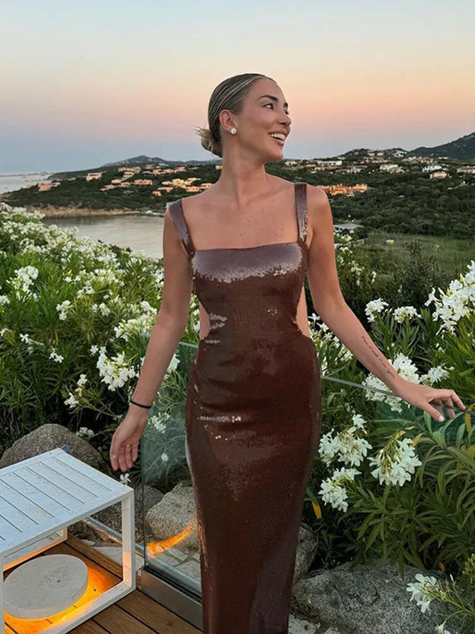 Portuna | Chic Rygglös Klänning För Speciella Tillfällen – Fyrkantig Krage