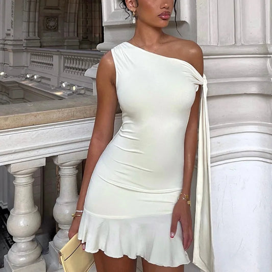 Qadira | Elegant Vit Klänning Dam – Med Ruffles För Festliga Tillfällen