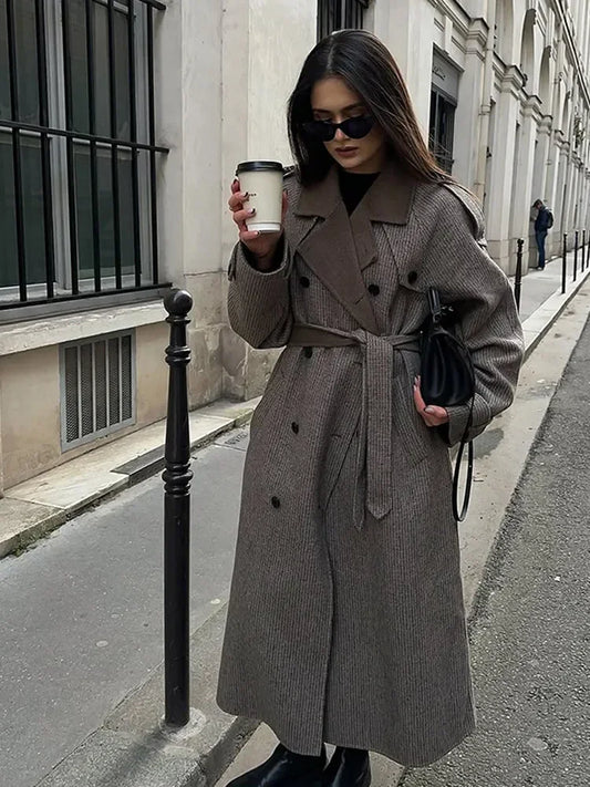 Rhiannon | Retro Dubbelbröst Kappa – Tidlös Elegans och Smickrande Silhuett