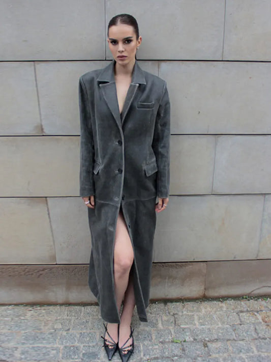 Raquel | Tidlös Grå Kappa – Retro Design För Eleganta Tillfällen