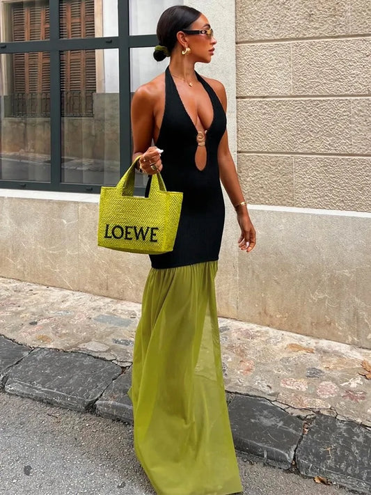 Retro | Elegant V-Neck Hög Midja Festklänning för Dam