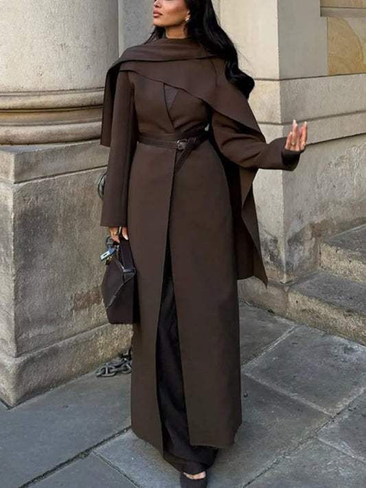 Riley | Tidlös Retro Kappa – Med Bälte För Elegant Silhuett I Djup Brunt