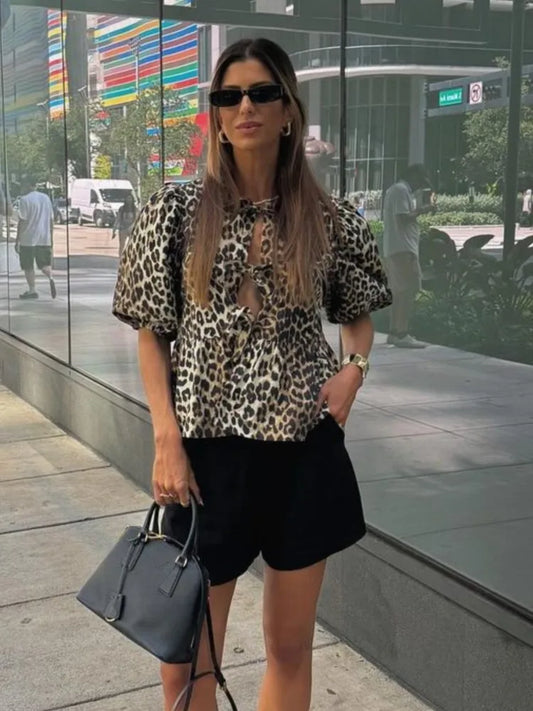 Sharon | Djärv Leopardtryck Snörningskjorta För Mångsidig Stil
