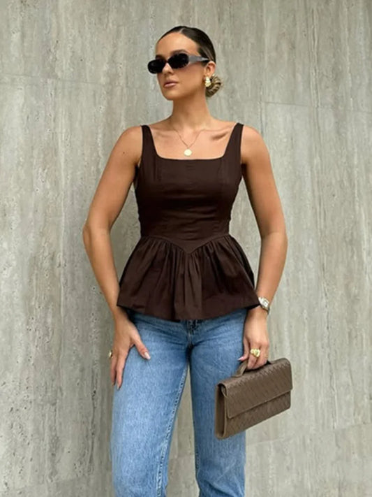 Simone | Elegant Ärmlös Topp – Rufsad Nederkant i Mjuk Brun FärgOrdinarie pris 35 SEKOrdinarie prisEnhetspris per0 SEKFörsäljningspris 35 SEK