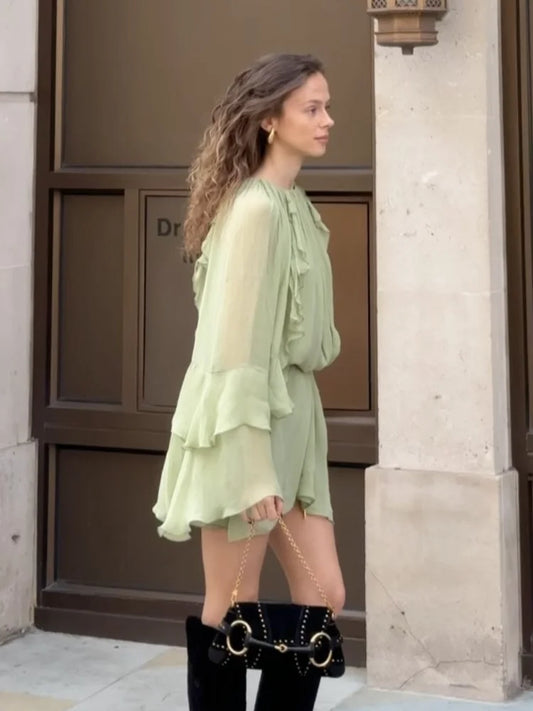 Solene | Lekfull Grön Rufsad Miniklänning – För Alla TillfällenOrdinarie pris 45 SEKOrdinarie prisEnhetspris per0 SEKFörsäljningspris 45 SEK