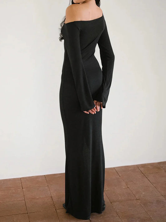 Viridis | Elegant Klänning Dam – Snedskuren Halsringning för Fest och Vardag