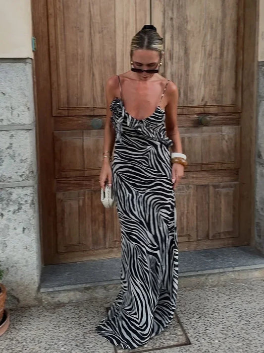 Xaviera | Dam V-Ringad Randig Klänning – Slingremmar För Sommarens Eleganta Stunder
