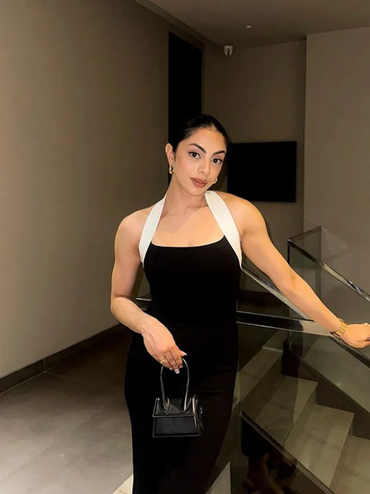 Xarina | Elegant Smal Halterklänning – Figur-Kramande Stickad Design