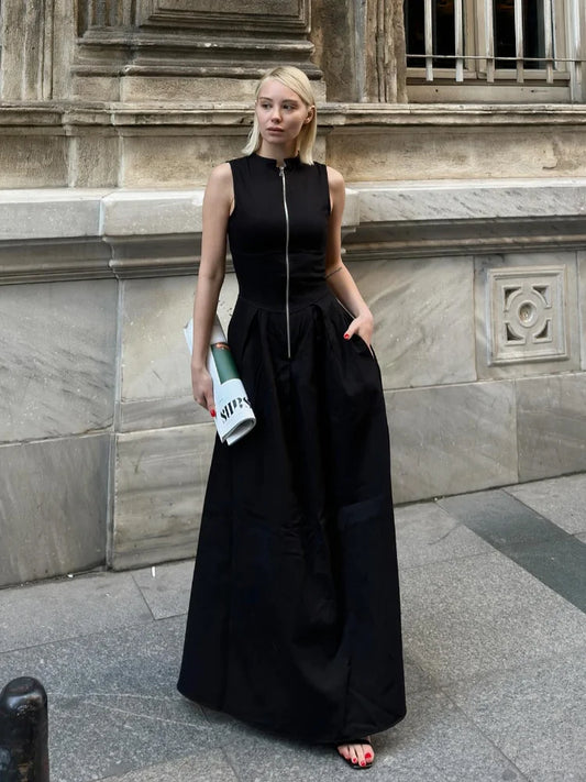 Xenovia | Elegant Svart Långklänning För Dam – Stilren Design