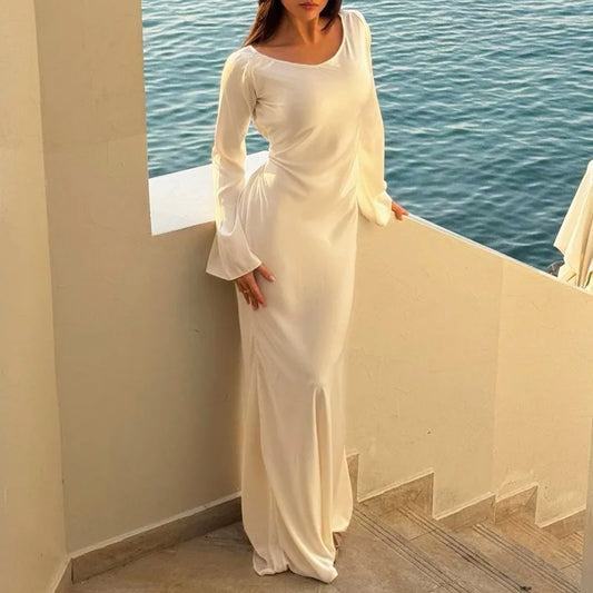Joana | Elegant Vit Klänning Dam – Veckad Design För Sommar Och Bröllop