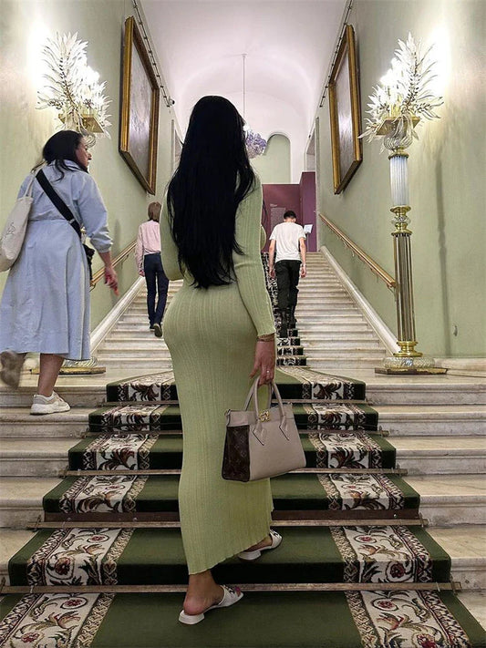 Hillary | Elegant Långärmad Maxiklänning – Smal Passform för Tidlös Stil