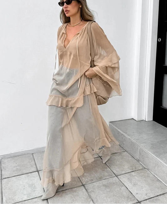Juliette | Elegant Festklänning för Damer – Kaki Transparent Design