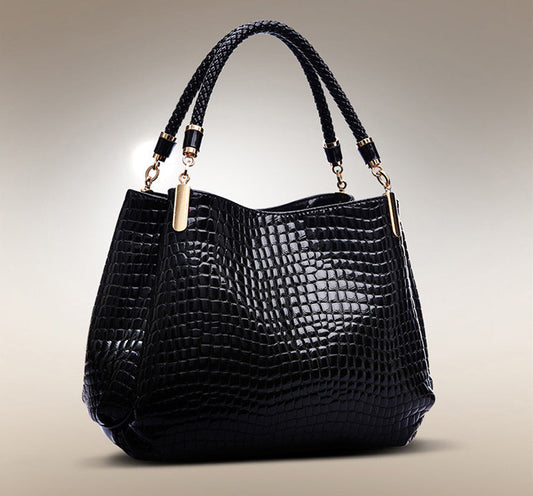 Karin | Svart Croc-präglad Läderhandväska Dam – Rymlig Interiör
